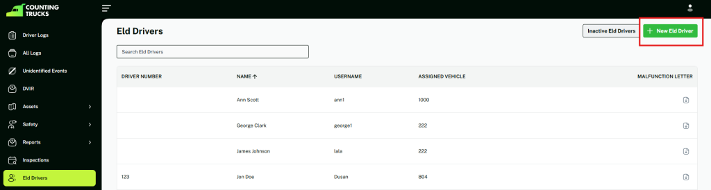 Make sure you have created the vehicle that this driver will be using, if you have not and it’s a new vehicle go to the Helpdesk called ‘How to Add Truck?’ and follow the steps there, after that come back and follow the steps here.