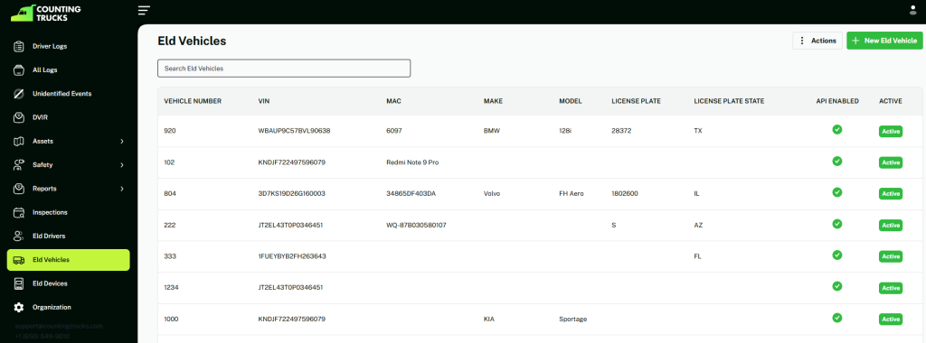 Step 2 : Click the New Eld Vehicle in the top right corner.