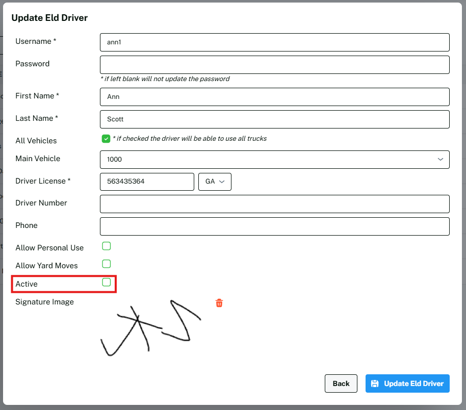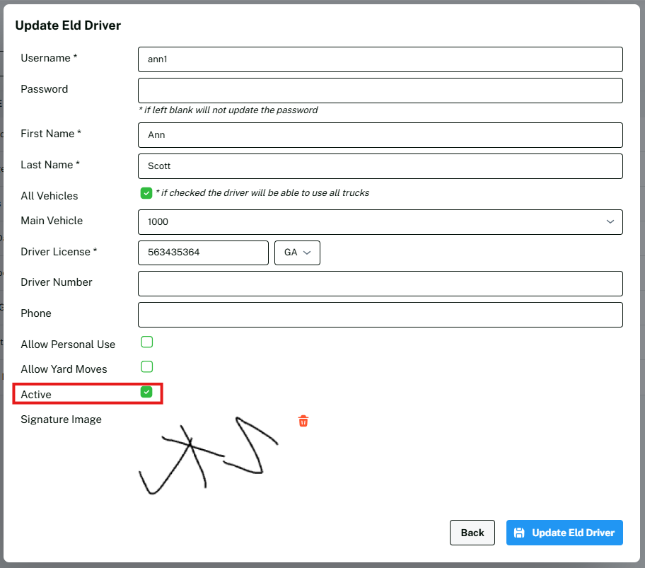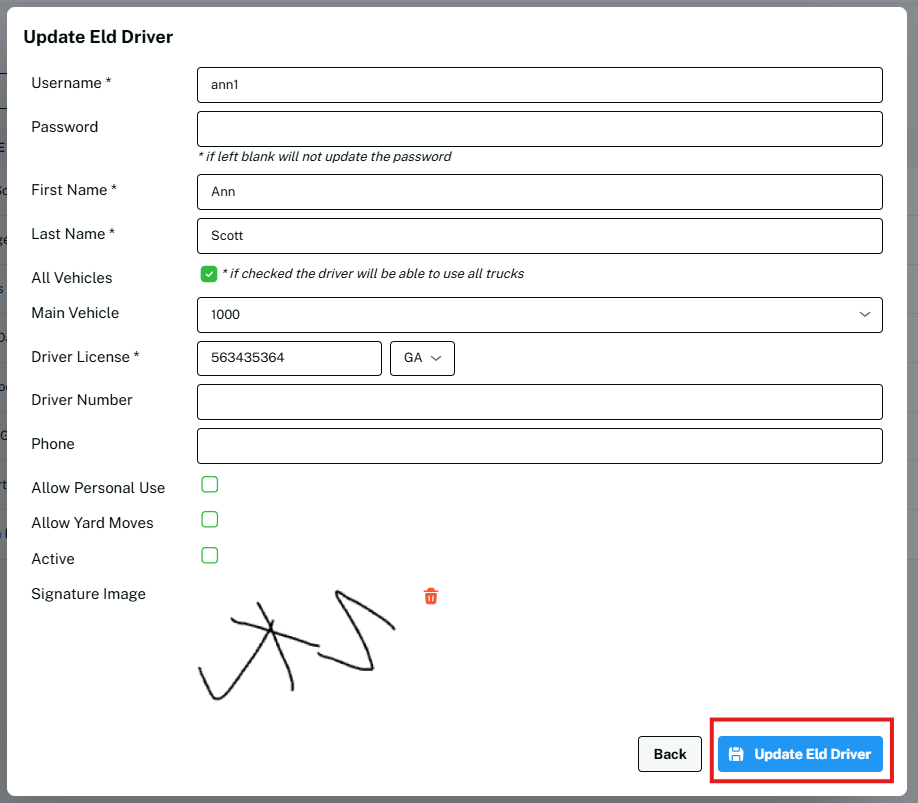 Step 4: Click on Update Eld Driver.